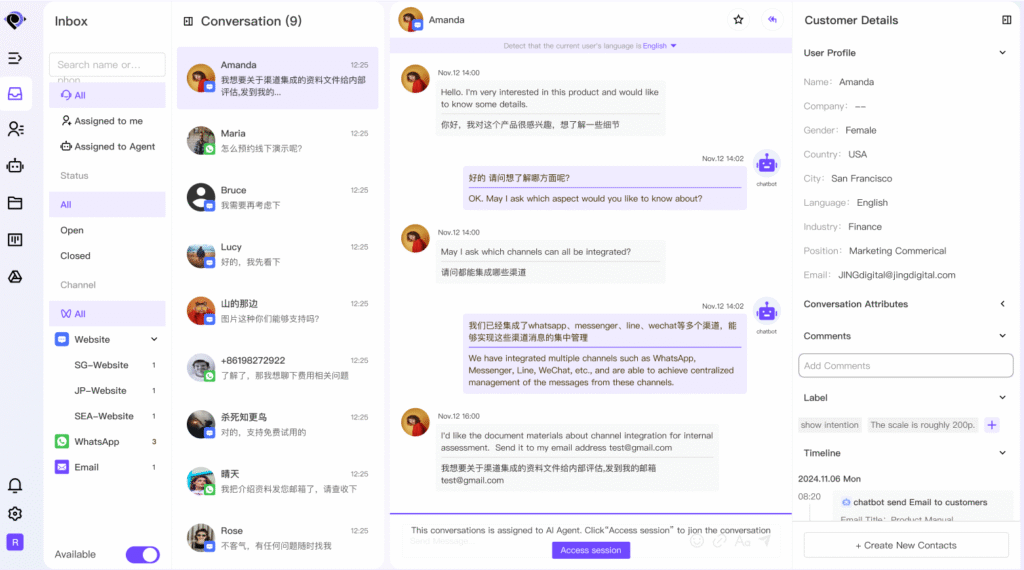 Connect effortlessly with all key channels—from messaging apps to email—without the hassle. Keep every interaction unified and flowing across platforms, saving your team time and maximizing impact.